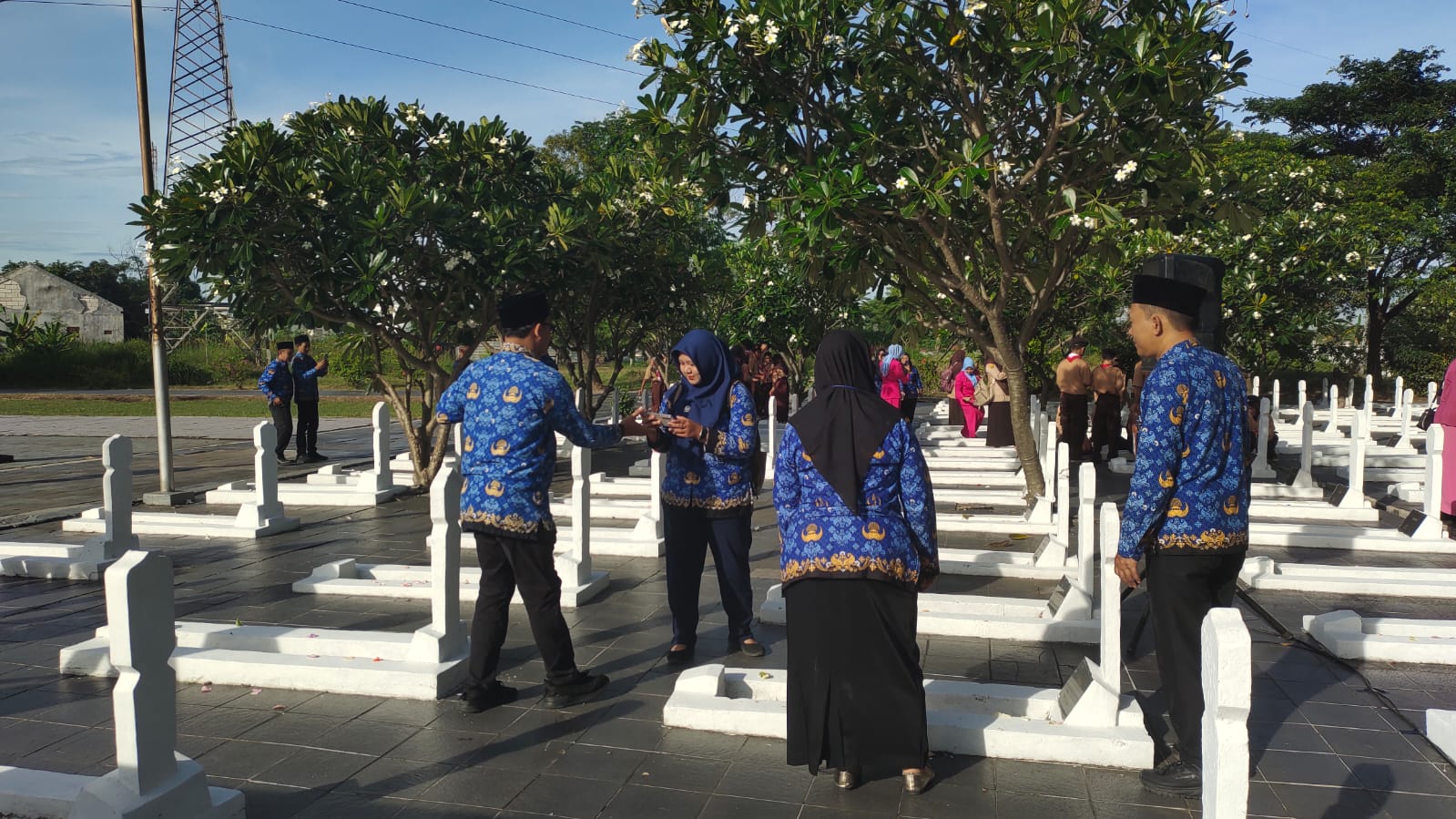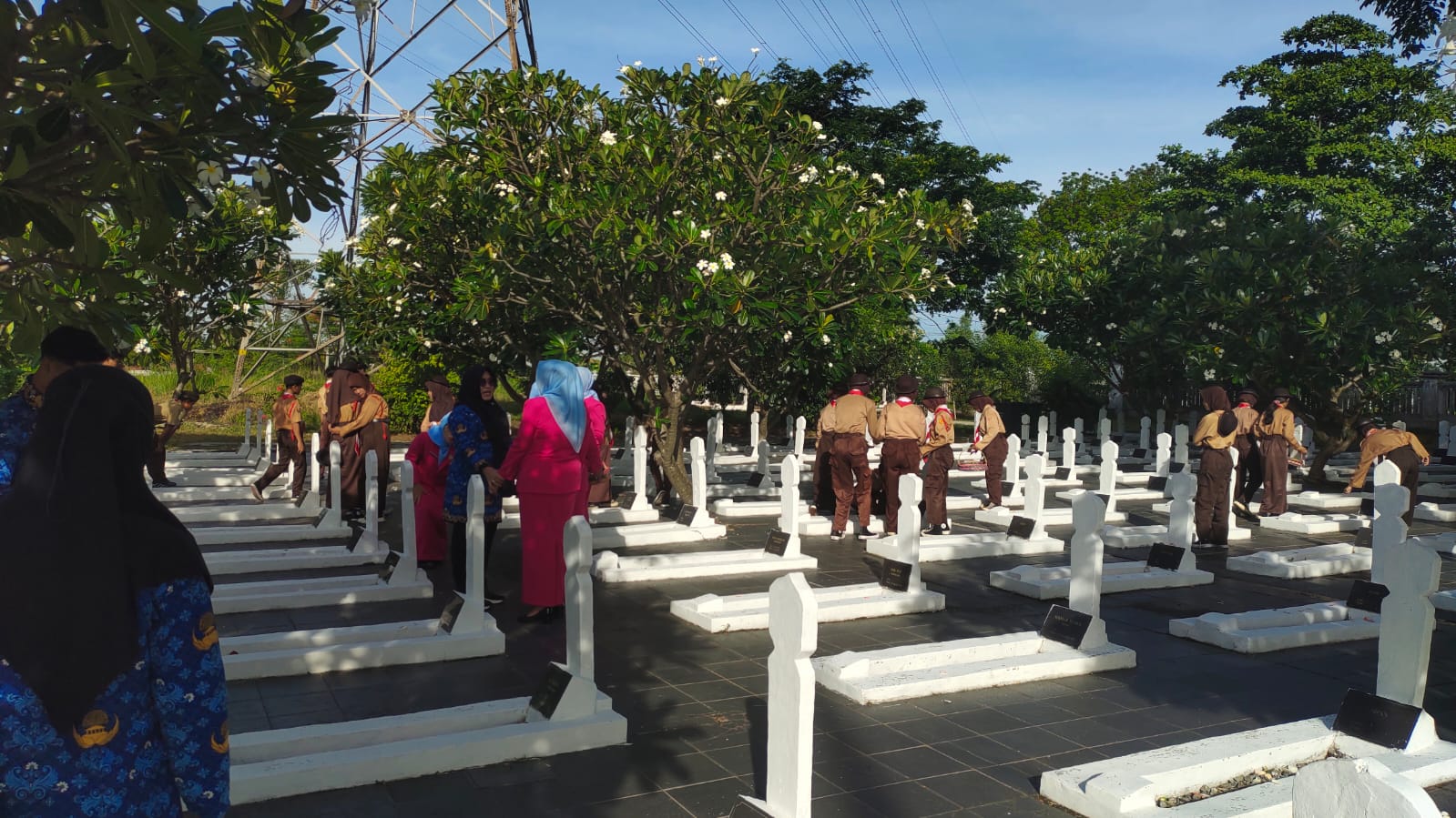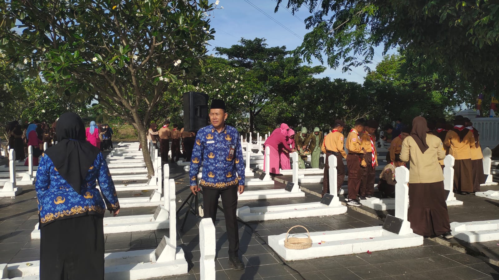 Usai upacara, kegiatan dilanjutkan dengan tabur bunga di pusara para pahlawan sebagai bentuk penghormatan dan doa bagi arwah mereka.