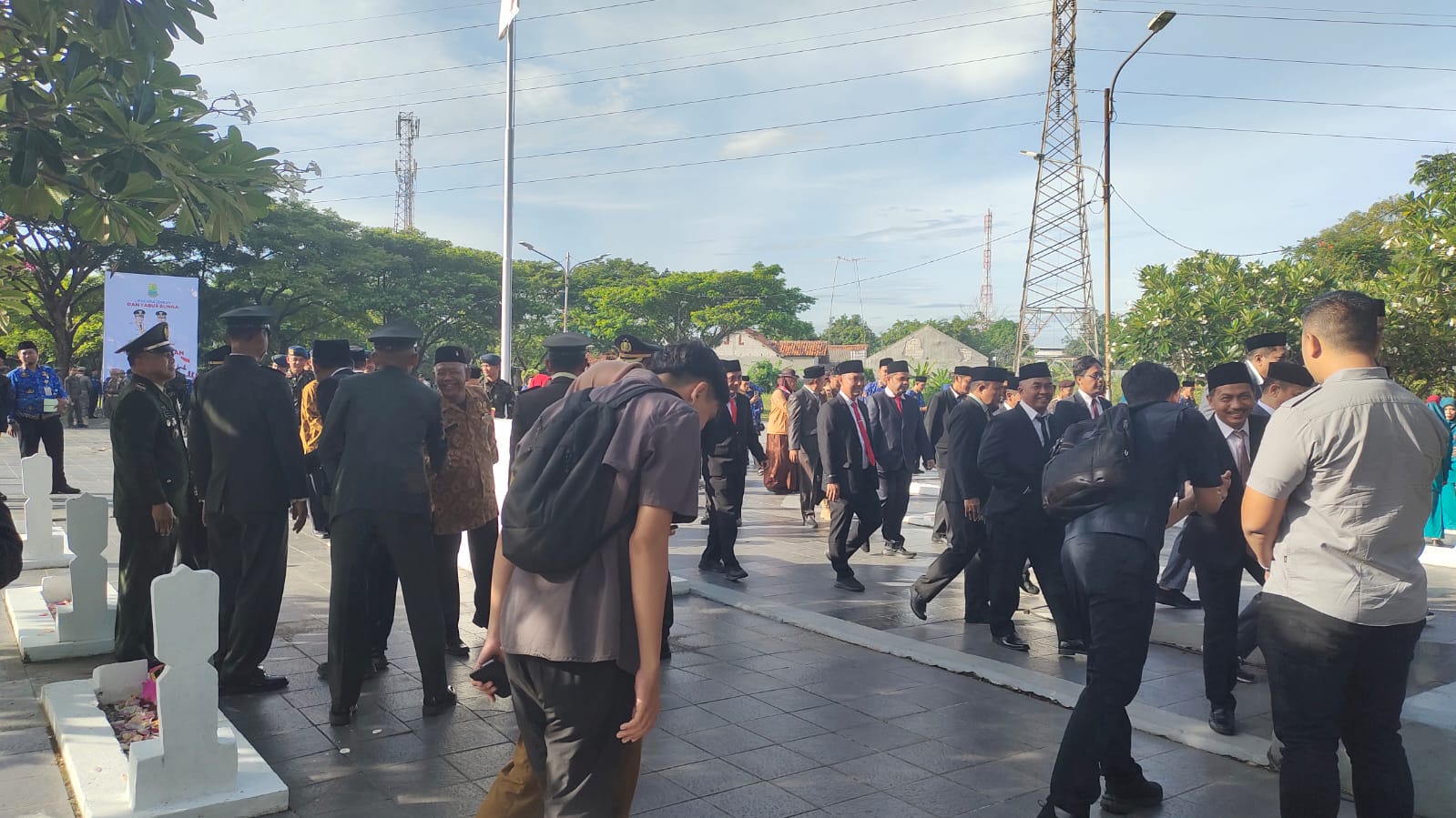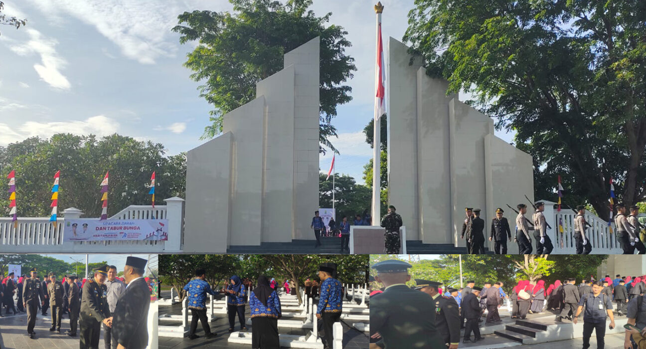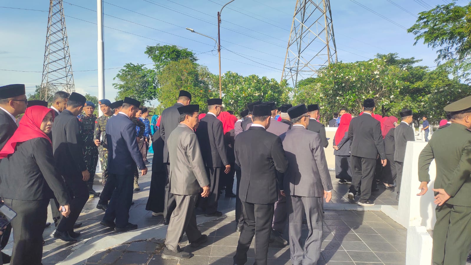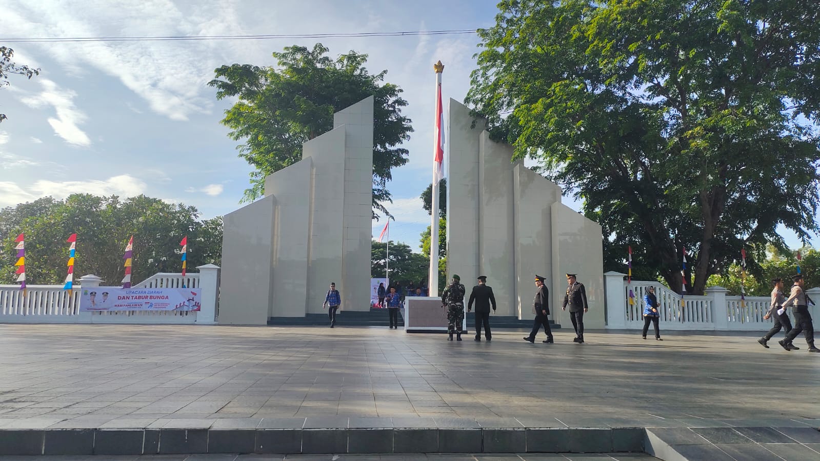 Usai upacara, kegiatan dilanjutkan dengan tabur bunga di pusara para pahlawan sebagai bentuk penghormatan dan doa bagi arwah mereka.
